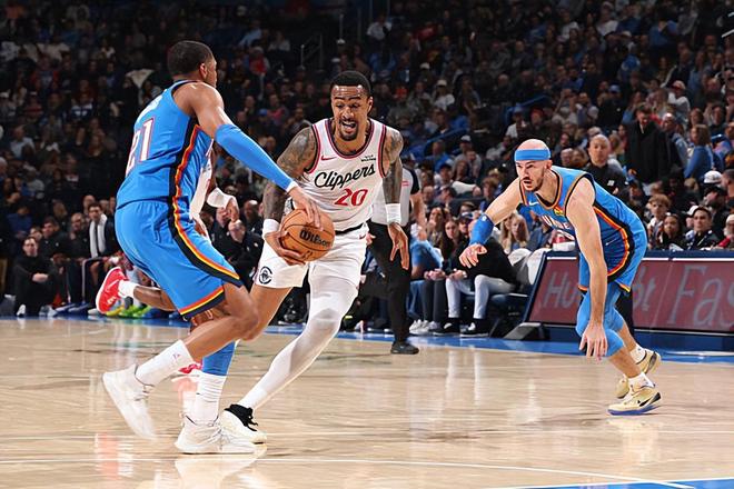 在此前的一场NBA常规赛中,主场作战的俄克拉荷马城雷霆以122比101轻松战胜了洛杉矶快船。本场比赛后,雷霆的战绩提升到了25胜2负,继续排名西部榜首位置;而已经遭遇了5连败的快船的战绩则是下滑到了6胜21负,继续排名西部倒数第2位,但是与榜末球队新奥尔良鹈鹕的胜场差也只剩下了半场。